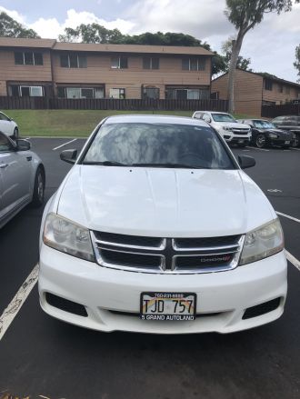 FOR SALE. This is a White 2012 Dodge Avenger sedan with Black interior, Automatic transmission, Four-Wheel Drive, and a 4-Cyl. engine. It's in Excellent condition, with 123,419 miles, and located in Wahiawa, HI.
