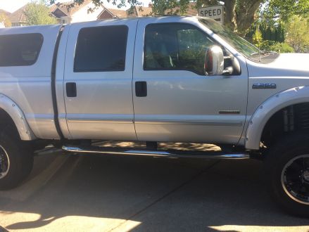 8inch lift, over sized tires, blue spring upgrade, sinister diesel filtration system, traction bars, after market rear diff cover, snug top canopy matching paint, after market led head lights,dome lights, running boards and lights. Moon roof, power steering, heated leather seats great condition, auto gauge. This truck is a daily commuter 10miles round trip. I’ve babied this rig since I’ve owned it. I feel I might be under bidding.
